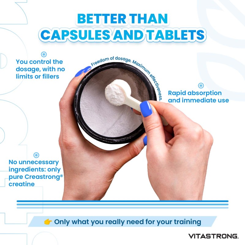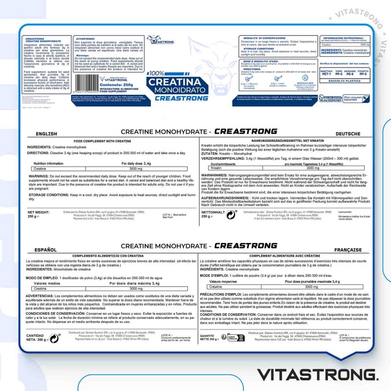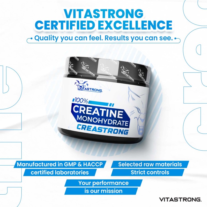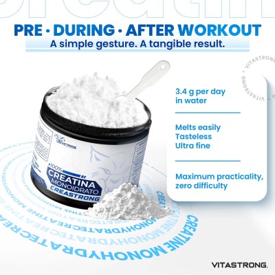 Creastrong® is een ultra-gemicroniseerd creatine monohydraat (200 mesh), ontworpen voor atleten die hun prestaties willen maximaliseren. Dankzij de zuiverheid en geavanceerde technologie lost deze creatine gemakkelijk op in water, wordt het snel door het lichaam opgenomen en komt het binnen korte tijd in de bloedbaan terecht. Zo wordt directe ondersteuning geboden bij intensieve trainingen.