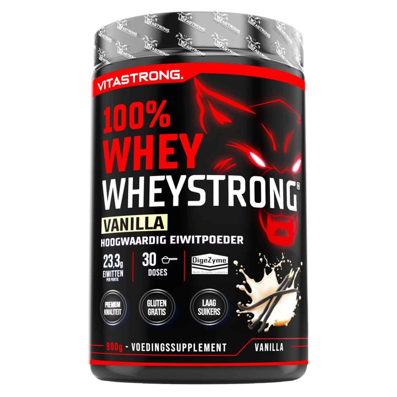 Wei-eiwit is een van de meest complete eiwitbronnen die er zijn. Ze zijn rijk aan essentiële aminozuren, met name BCAA's, stimuleren de eiwitsynthese en bevorderen de spieropbouw na de training. Dankzij de spijsverteringsenzymen wordt Wheystrong gemakkelijk verdragen en verteerd, waardoor een opgeblazen gevoel en zwaartegevoel worden voorkomen.
