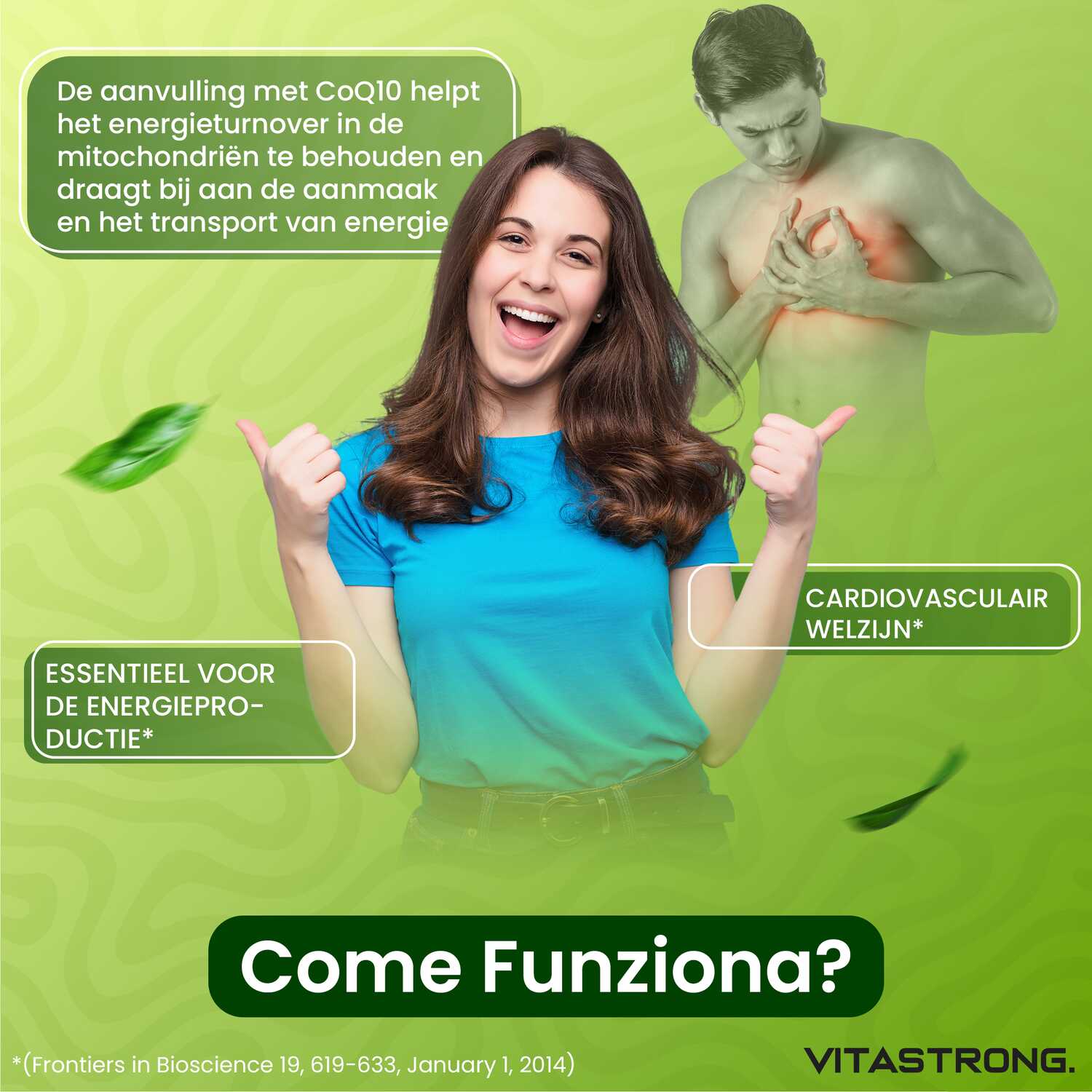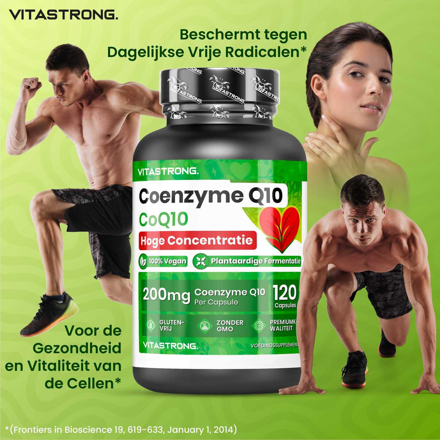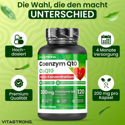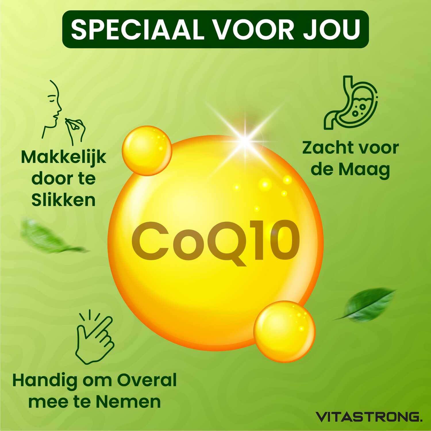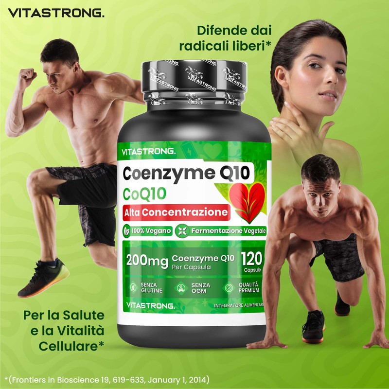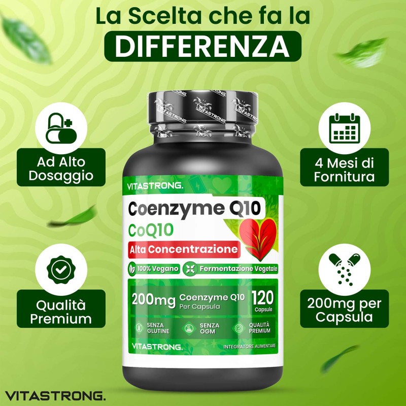 Vitastrong Co-enzym Q10 is een supplement met een hoge concentratie CoQ10, een stof die van nature in ons lichaam voorkomt en essentieel is voor de energieproductie op cellulair niveau. CoQ10 speelt een cruciale rol in het energiemetabolisme en fungeert als een krachtige antioxidant die cellen beschermt tegen oxidatieve stress.