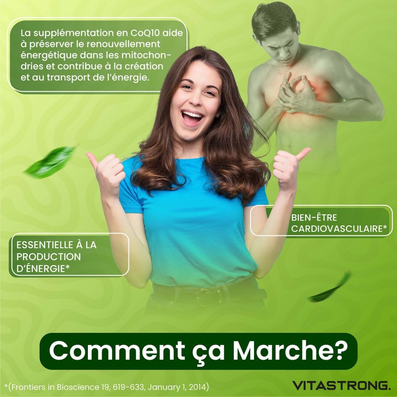 CoQ10 is een essentieel onderdeel van de energieproductie in cellen en speelt een belangrijke rol bij de aanmaak van ATP (de primaire energiebron van het lichaam). Dit molecuul is ook een krachtige antioxidant die vrije radicalen kan neutraliseren en oxidatieve stress kan verminderen, waardoor cellen worden beschermd tegen schade * .