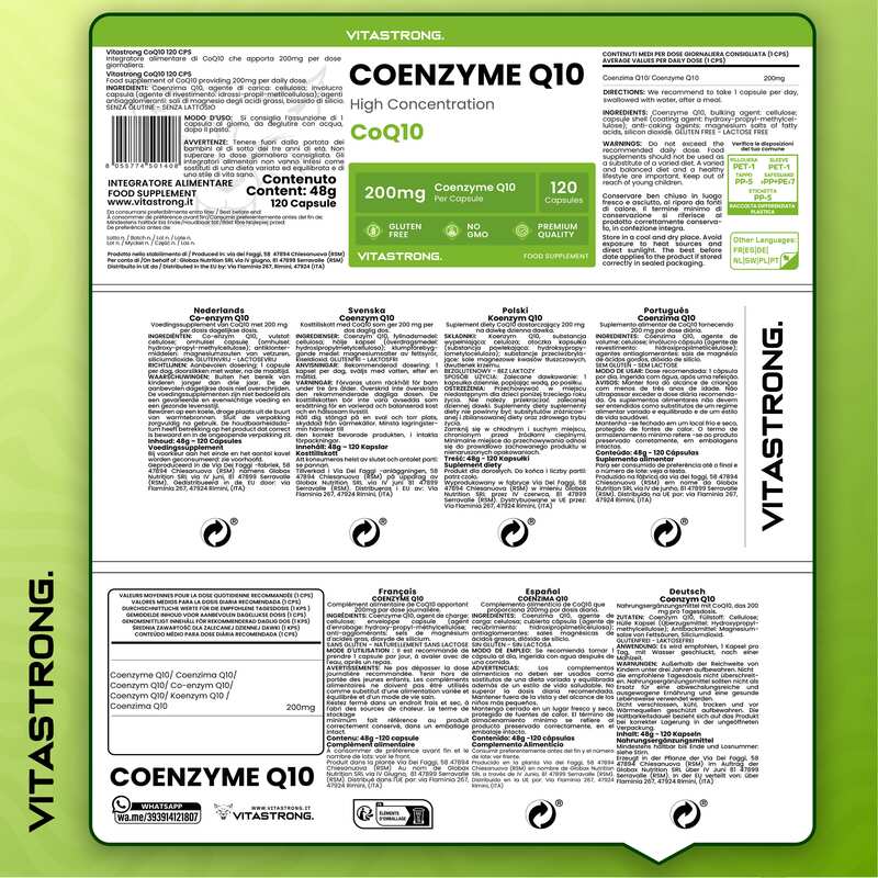 Vitastrong Co-enzym Q10 is ideaal voor mensen die hun energie en vitaliteit willen behouden. Het ondersteunt de gezondheid van het hart, het celmetabolisme en het algemene welzijn. De glutenvrije en lactosevrije formule maakt het geschikt voor mensen met specifieke dieetwensen.