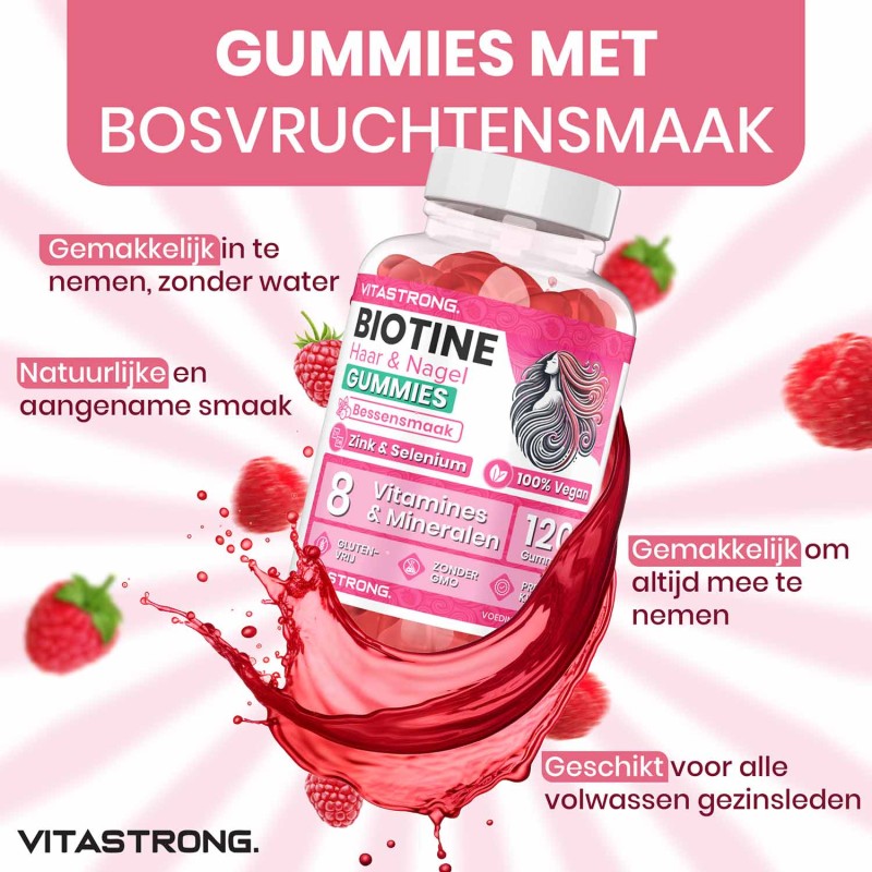 Vitastrong Biotin Gummies zijn ontwikkeld om een nieuwe supplementenervaring te bieden, speciaal voor mensen die zichtbare resultaten willen, maar moeite hebben om consequent capsules of tabletten te gebruiken.