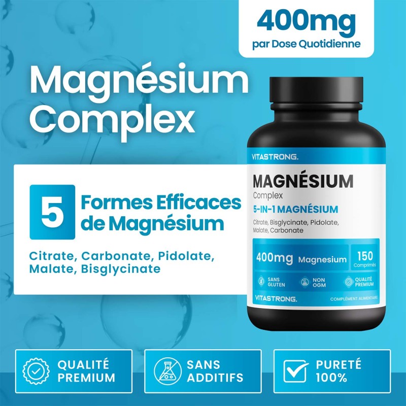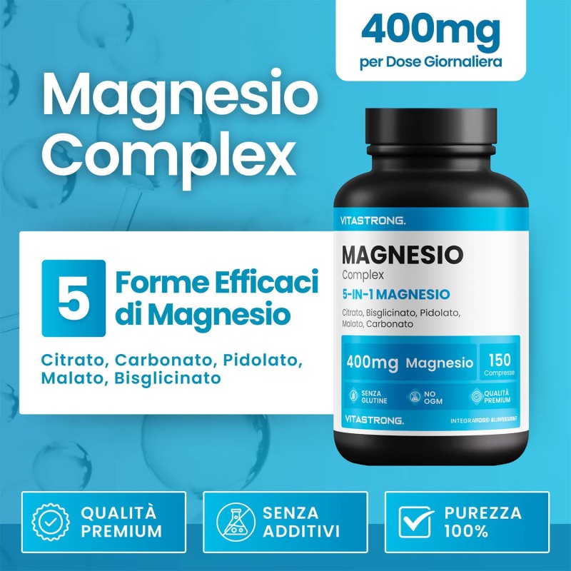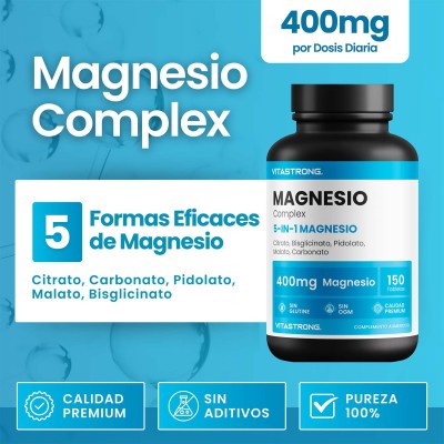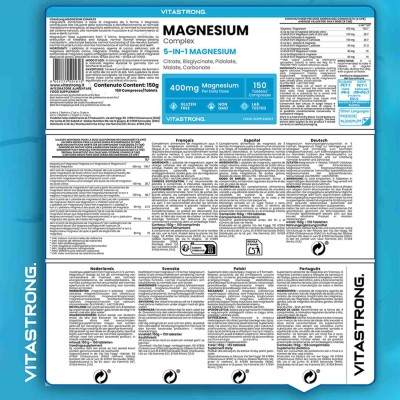 Vitastrong Magnesium Complex is een geavanceerd voedingssupplement dat 5 verschillende vormen van magnesium combineert voor maximale absorptie en voordelen op meerdere fronten. Dit essentiële mineraal is essentieel voor het verminderen van vermoeidheid, het verbeteren van de spierfunctie en het ondersteunen van het zenuwstelsel en de gezondheid van de botten.