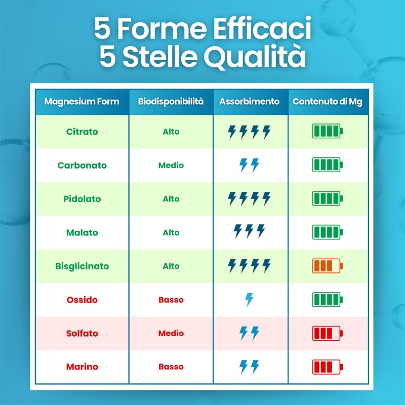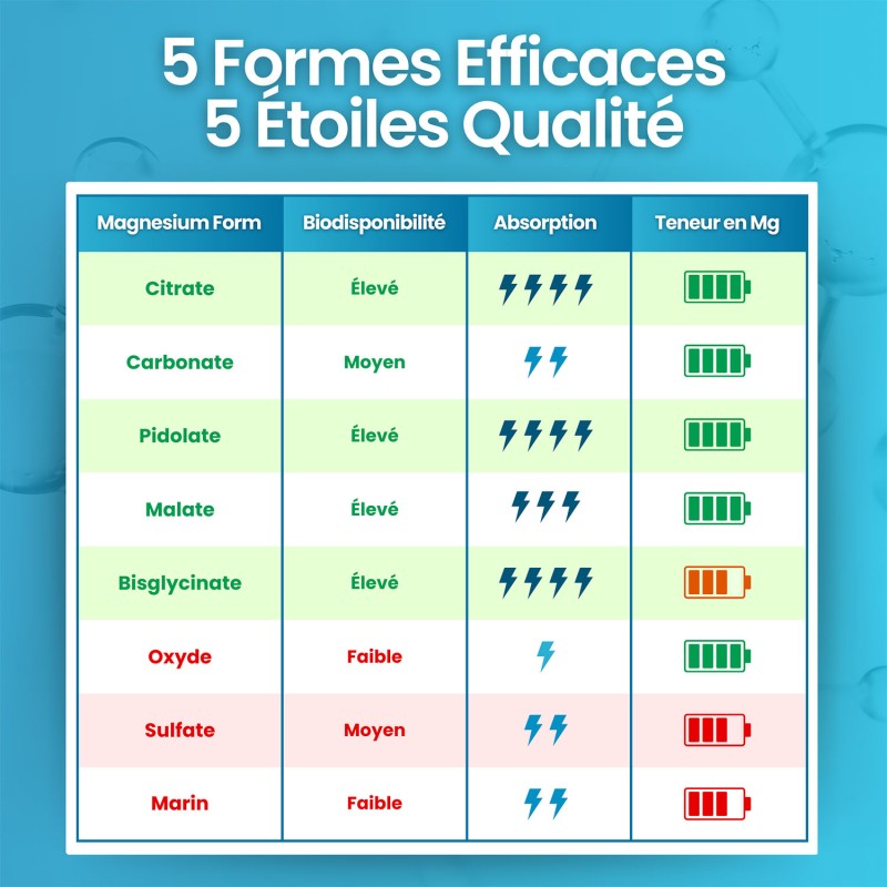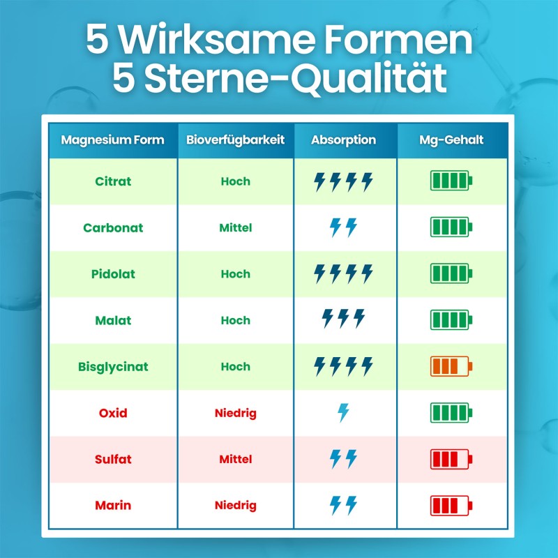 Vergeleken met traditionele magnesiumsupplementen biedt VITASTRONG een unieke 5-in-1 formule, met biologisch beschikbare en gemakkelijk opneembare vormen. Deze combinatie zorgt voor een optimale opname en een synergetische werking voor het algemene welzijn. Hierdoor is het ideaal voor mensen die op zoek zijn naar volledige ondersteuning voor energie, spieren en botten.