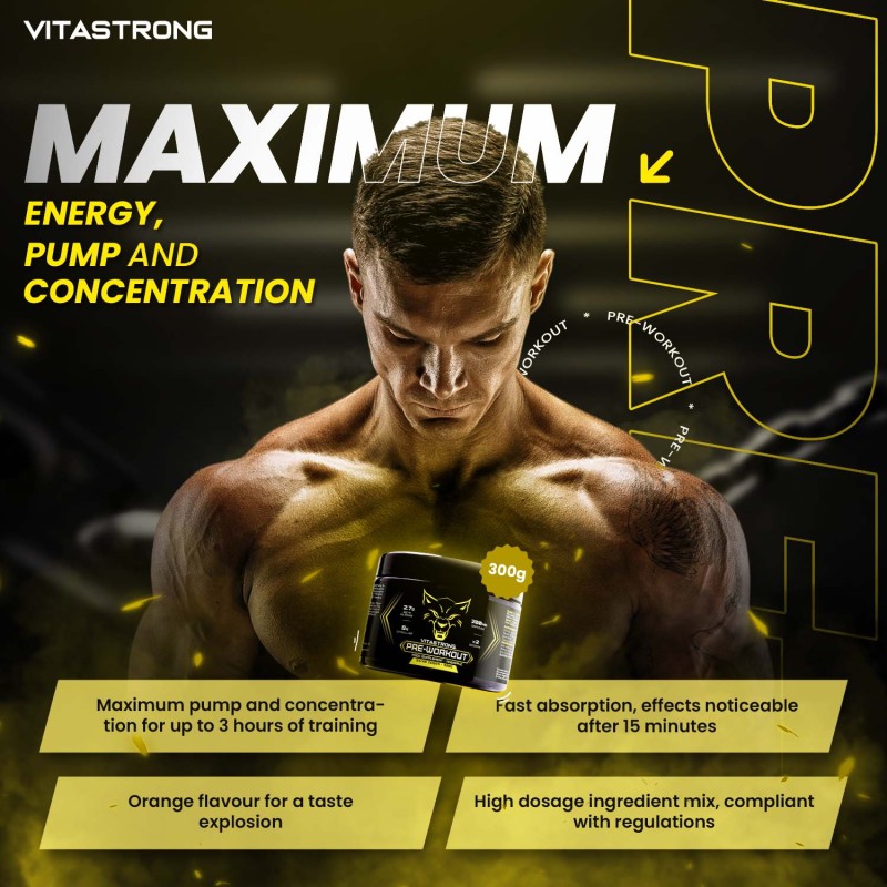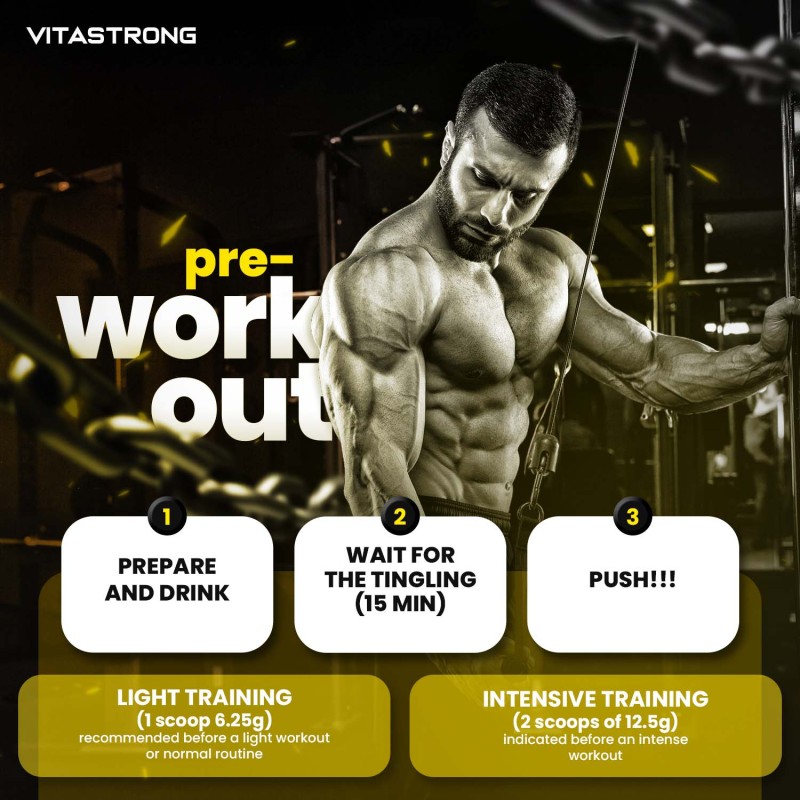 Vitastrong Preworkout is het paradepaardje van Vitastrong, een krachtige formule die is ontworpen om van elke training een gewonnen uitdaging te maken. Dankzij de combinatie van belangrijke ingrediënten zoals L-citrulline, bèta-alanine, cafeïne en AstraGin® geeft deze preworkout je ongeëvenaarde energie, uithoudingsvermogen en mentale focus.