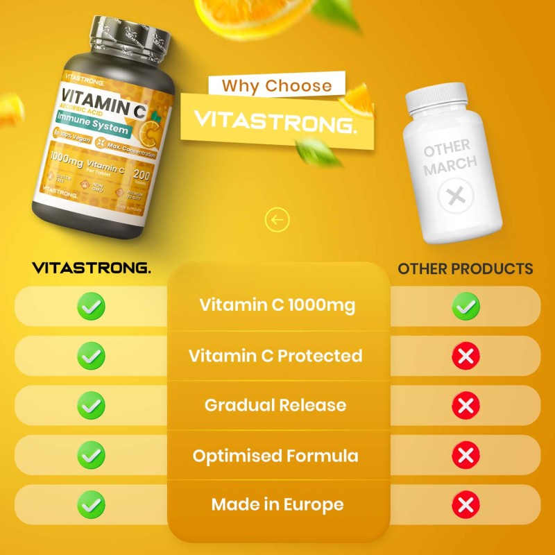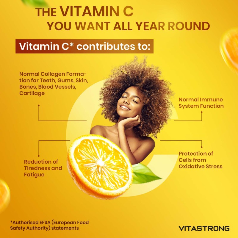 Vitastrong Vitamine C is een supplement op basis van zuivere vitamine C, essentieel voor de ondersteuning van het immuunsysteem, het beschermen van cellen tegen oxidatieve stress en het bevorderen van de collageensynthese, essentieel voor een gezonde huid, botten en kraakbeen. Vitamine C speelt ook een rol bij de energiestofwisseling en helpt vermoeidheid en moeheid te verminderen. Hierdoor is het ideaal voor de dagelijkse ondersteuning van het algemene welzijn.