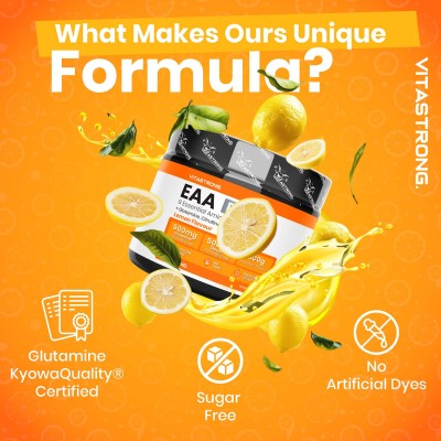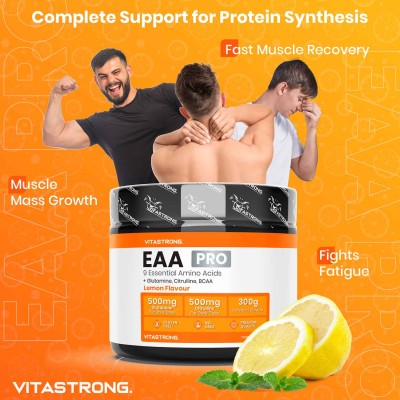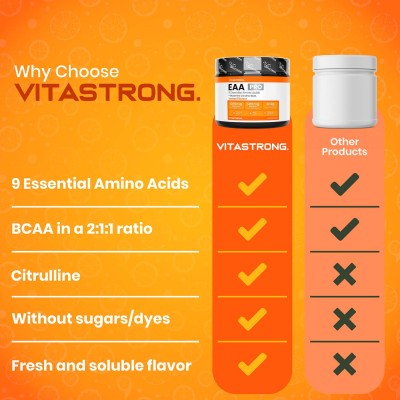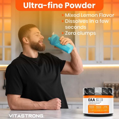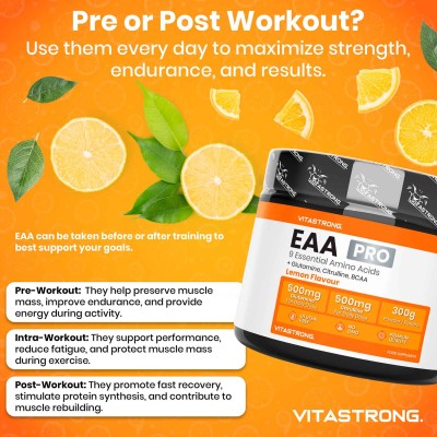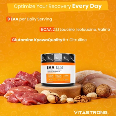 Vitastrong EAA Pro is een geavanceerd supplement met essentiële aminozuren met de smaak van citroen, perzik of rood fruit, dat speciaal is samengesteld om te voldoen aan de eiwit-/stikstofbehoefte, met als gevolg een beter herstel van de spieren, groei en fysieke prestaties. Essentiële aminozuren (EAA's) zijn fundamentele bestanddelen van eiwitten en ons lichaam kan ze niet zelf aanmaken. Het is daarom essentieel dat we ze via onze voeding of via supplementen binnenkrijgen.