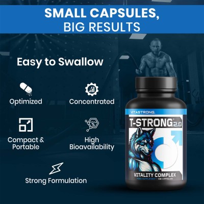 Testosteron is een steroïde hormoon dat essentieel is voor talloze mannelijke fysiologische functies, waaronder het behoud van spiermassa, het reguleren van het lipidenmetabolisme en de gezondheid van het hart en de bloedvaten. Naarmate men ouder wordt, neemt de productie ervan af, wat leidt tot een afname van energie, fysiek uithoudingsvermogen en herstelvermogen. T-Strong 2.0 is speciaal ontwikkeld om het lichaam te ondersteunen bij dit proces. Dankzij een combinatie van natuurlijke ingrediënten worden het energieniveau en de vitaliteit geoptimaliseerd.