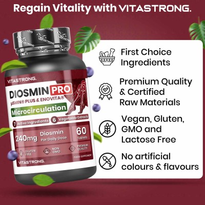 Vergeleken met andere microcirculatiesupplementen onderscheidt Diosmin PRO van Vitastrong zich door zijn complete formule met 7 actieve ingrediënten en 6 plantenextracten. Bevat gemicroniseerd Diosmine, wat zorgt voor een betere opname. Bovendien is het glutenvrij en lactosevrij, waardoor het geschikt is voor verschillende dieetbehoeften. De hoogwaardige kwaliteit van het product wordt gewaarborgd door de selectie van geteste en zeer effectieve ingrediënten.